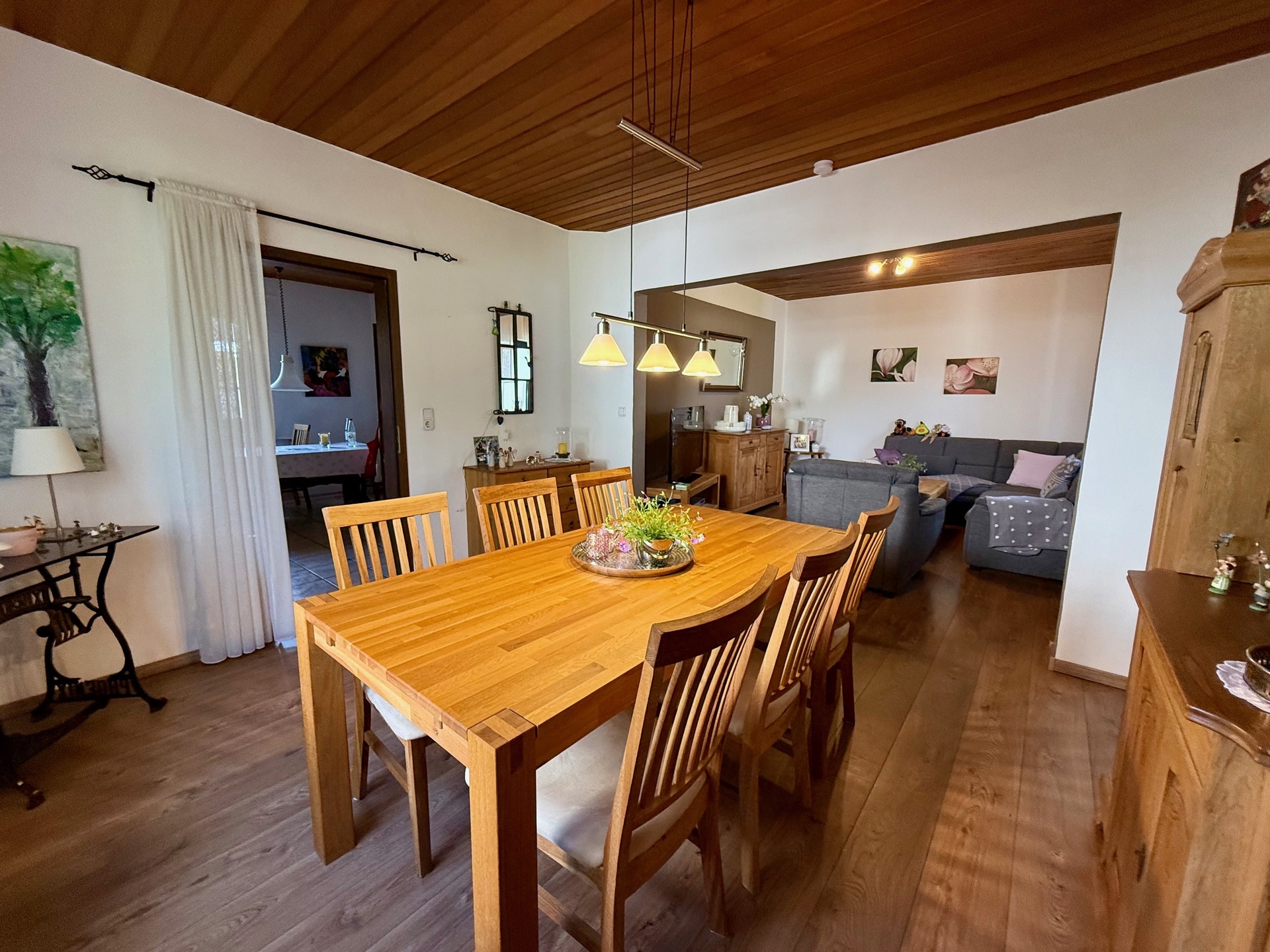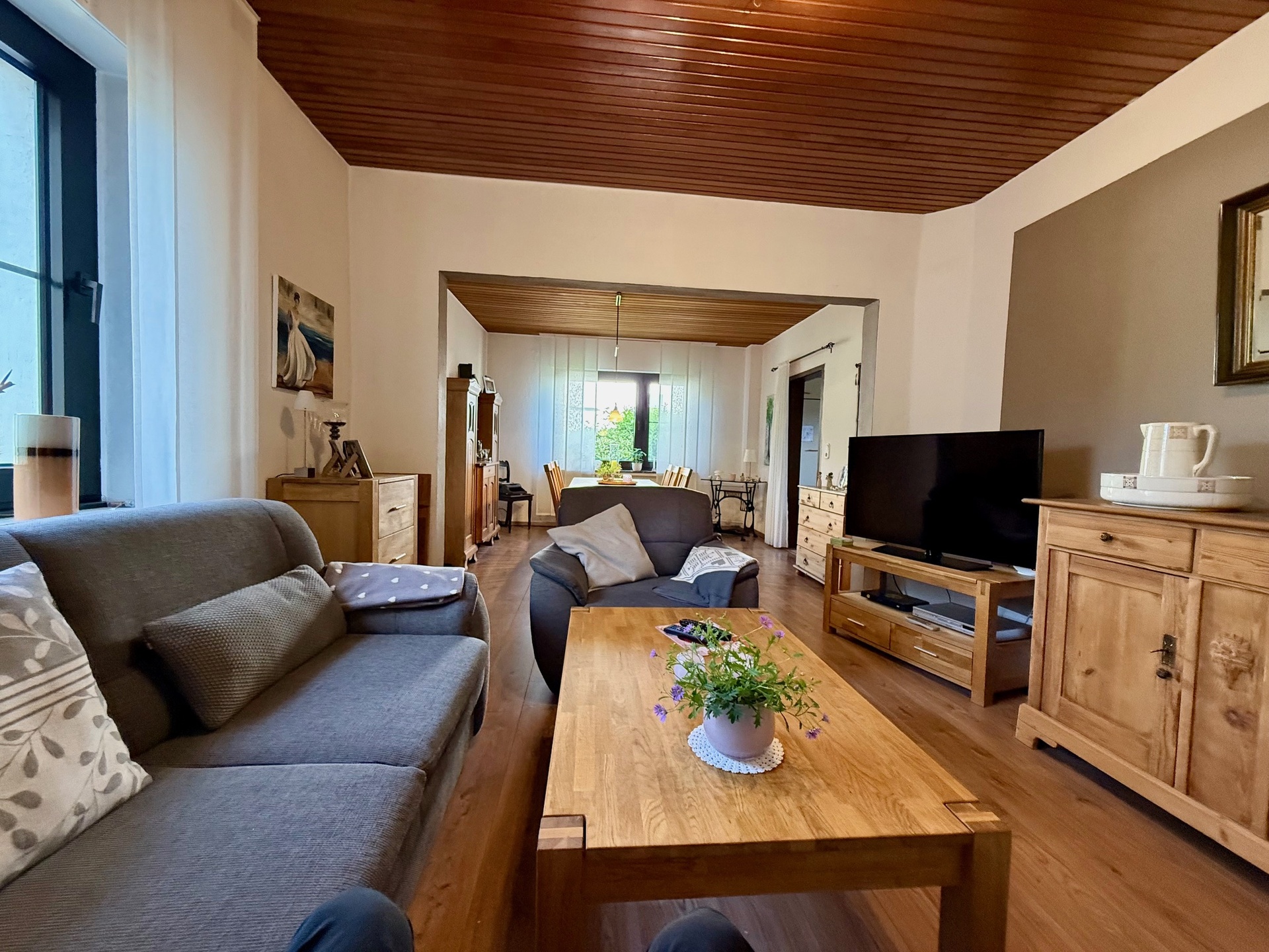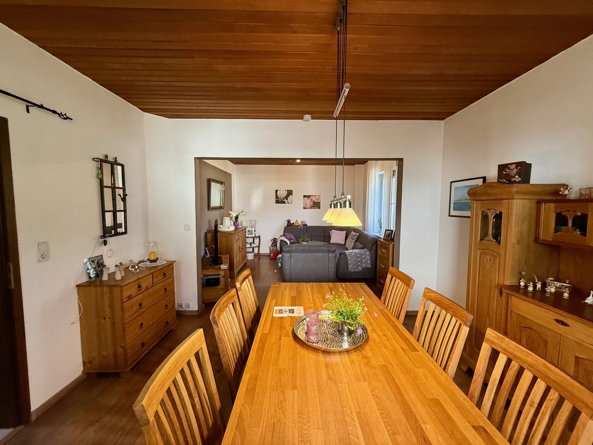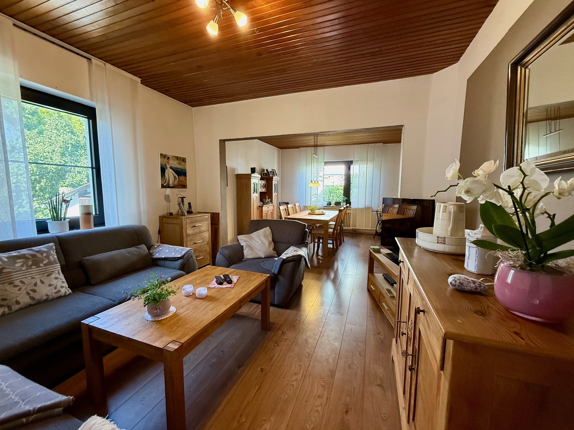 Das Herzstück im Erdgeschoss ist das großzügige Wohn-/Esszimmer (ca. 30 m²) mit seiner Gemütlichkeit – der perfekte Ort, um entspannte Abende mit Familie und Freunden zu verbringen.