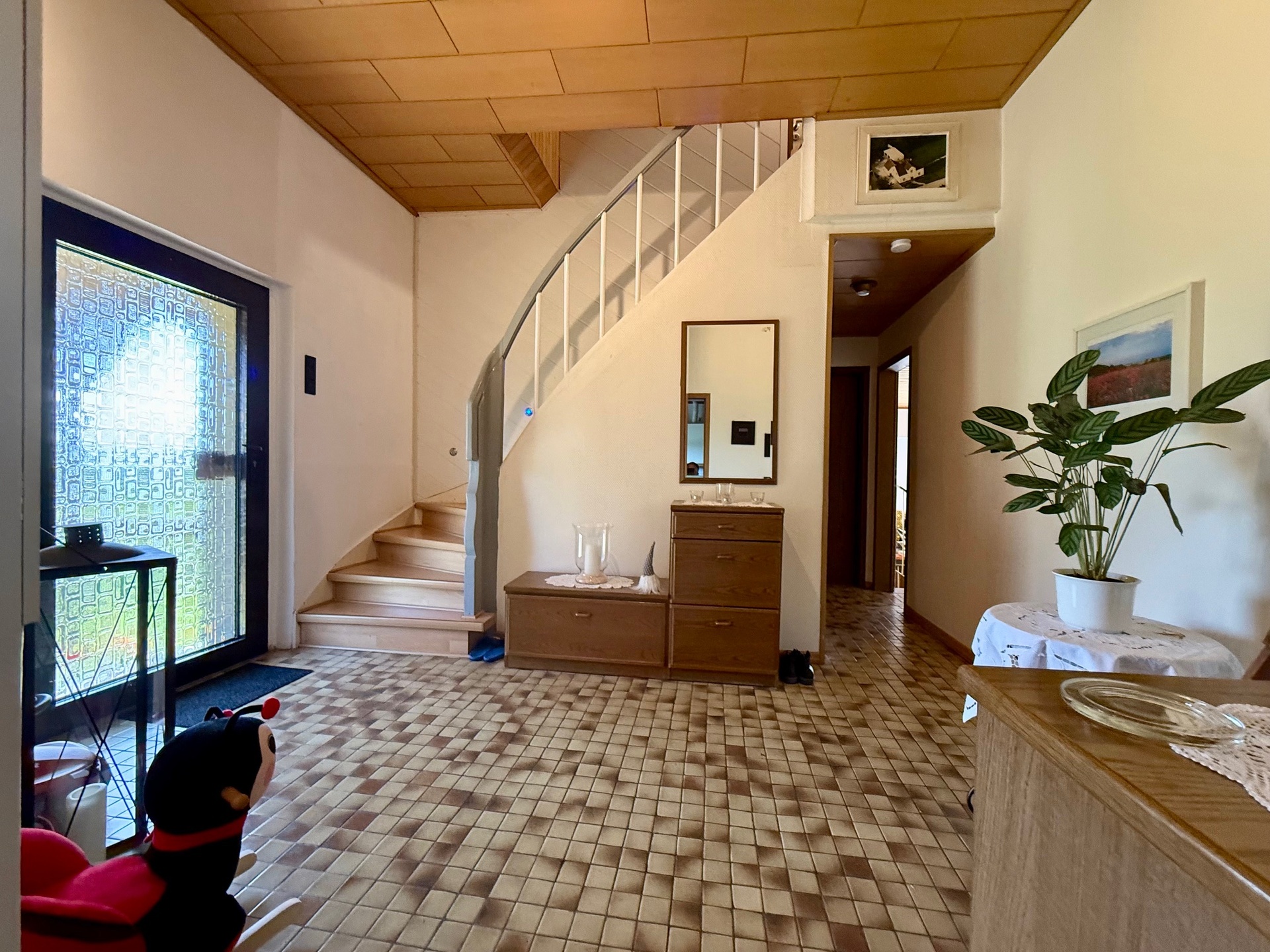Schon beim ersten Anblick hinterlässt dieses Wohnhaus mit seinem großzügigen Vorgarten, der Einfahrt und ausreichend Platz für Fahrzeuge einen gepflegten und einladenden Eindruck. Über eine hübsch gepflasterte Zuwegung betreten Sie Ihr neues Zuhause und finden sich in einer geräumigen Diele wieder, die den Startpunkt unseres Rundgangs bildet.