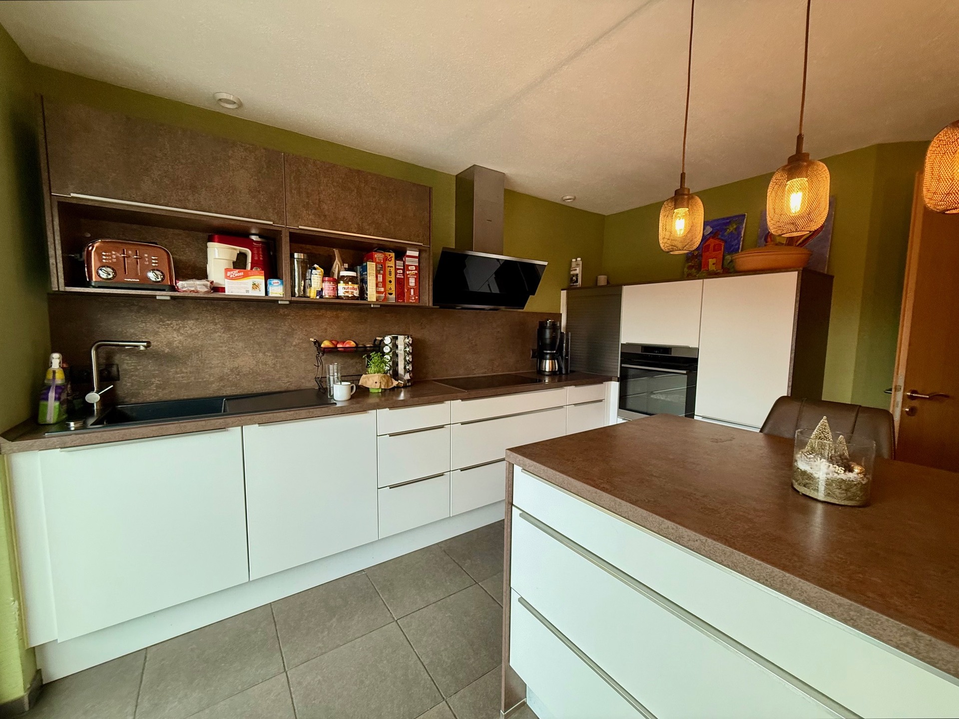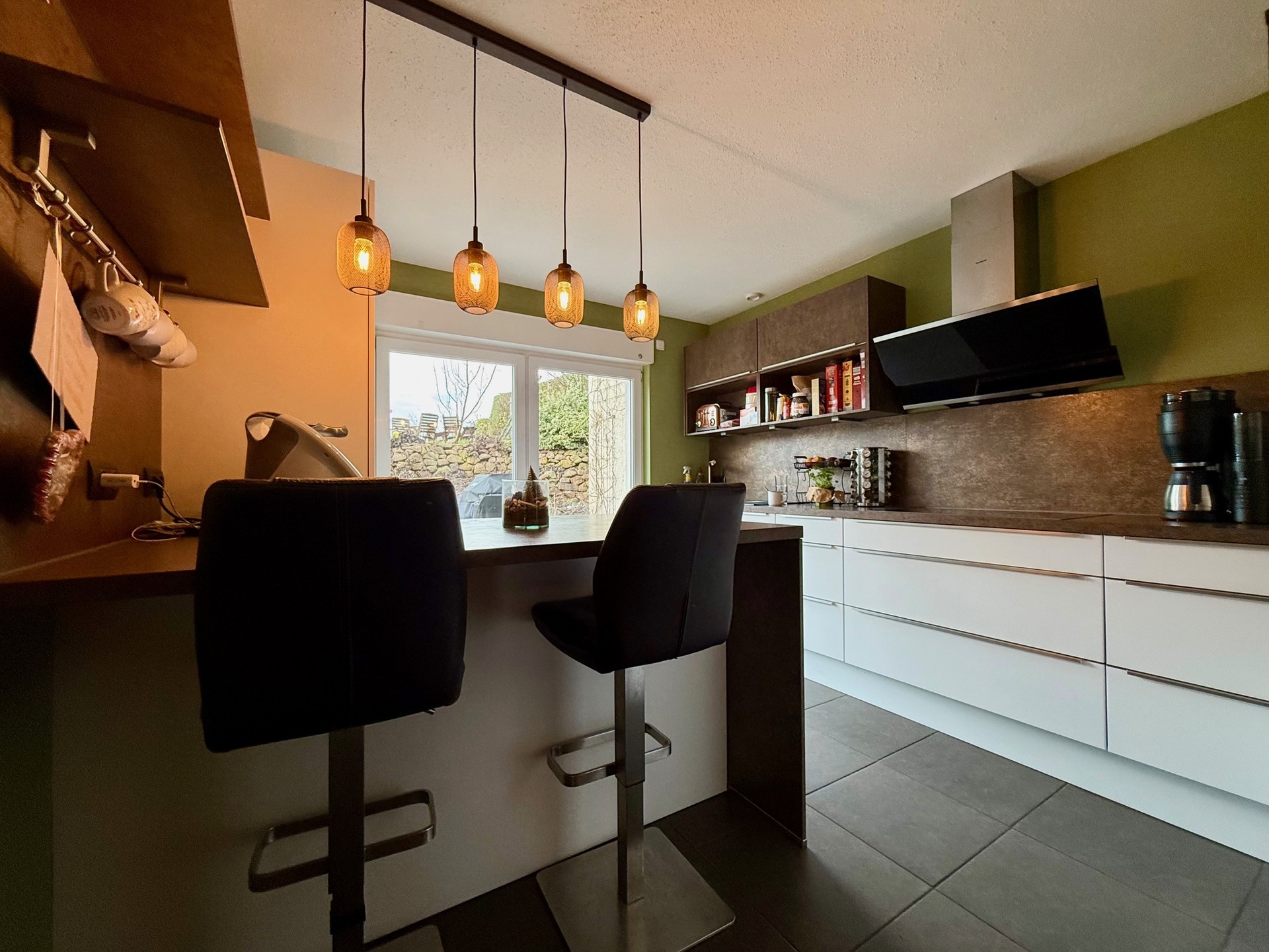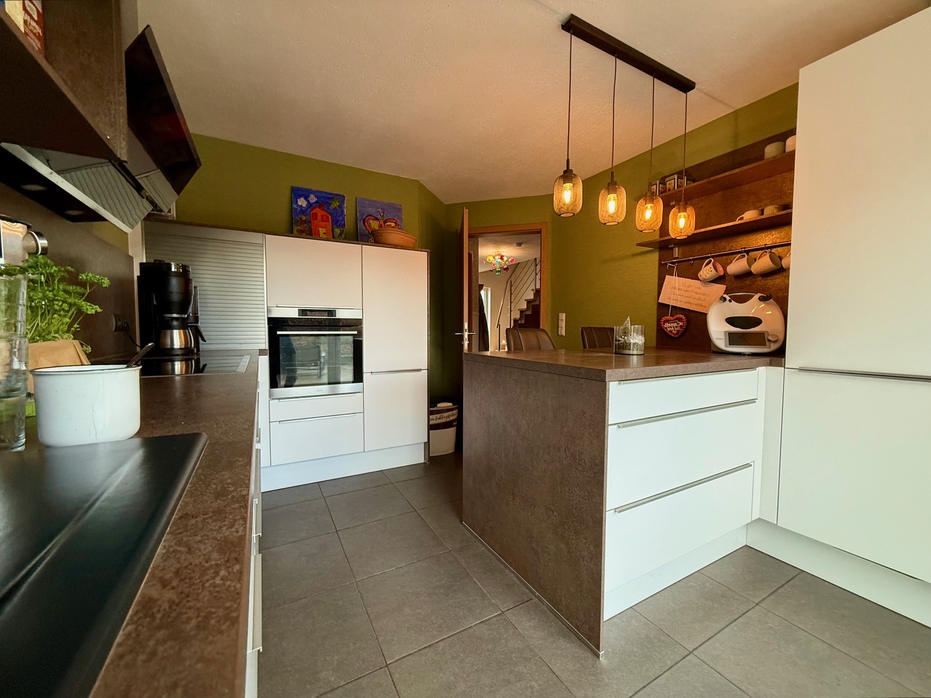 Die moderne Einbauküche von 2018 im Erdgeschoss, die mitverkauft wird, wird zum Herzen Ihres neuen Zuhauses. Ob beim Kochen für Freunde oder beim gemeinsamen Essen mit der Familie – hier entstehen Erinnerungen. Zusätzlich stehen im Erdgeschoss ein Tageslicht-Duschbad nebst WC sowie ein Hauswirtschaftsraum zur Verfügung.