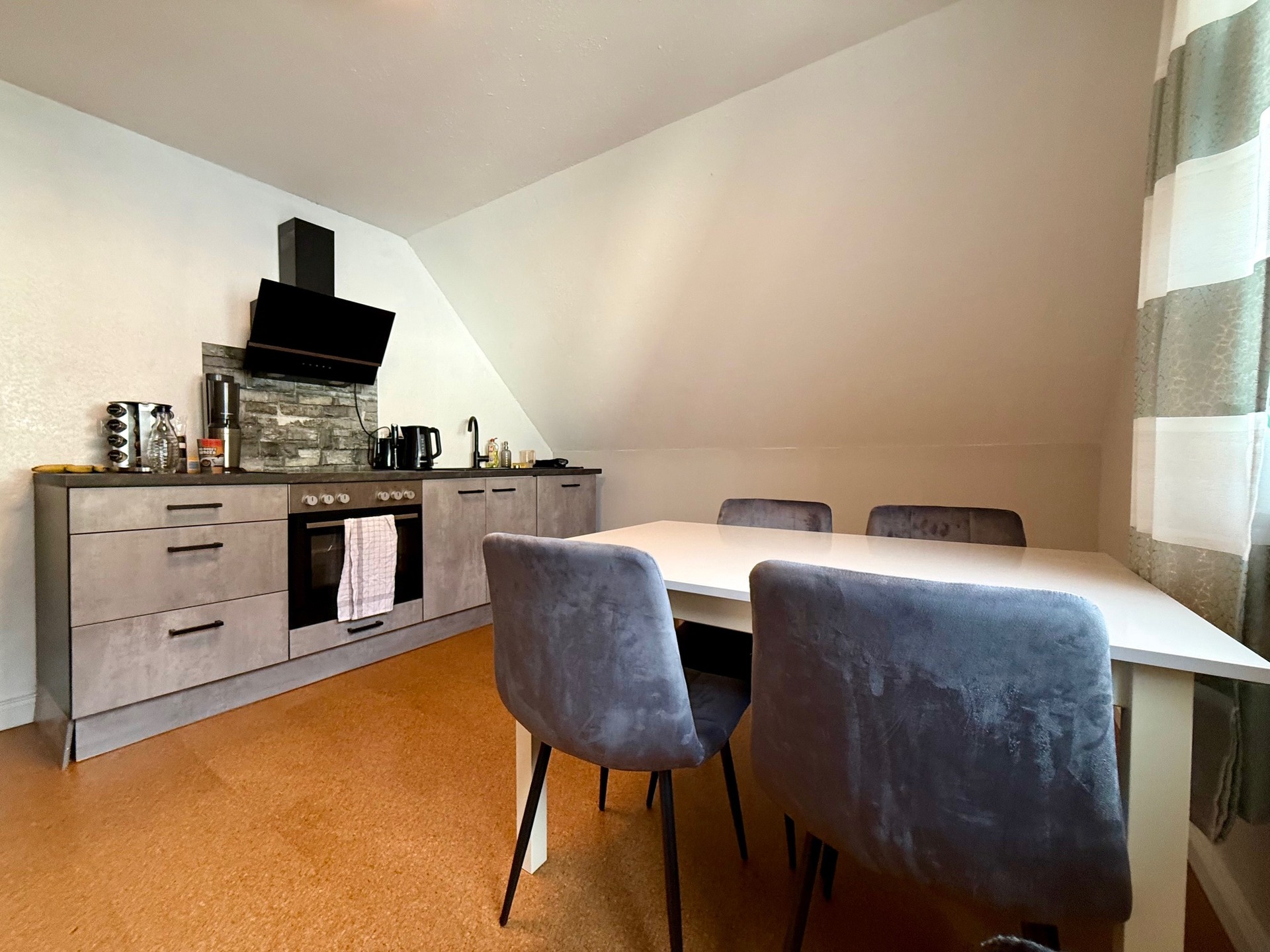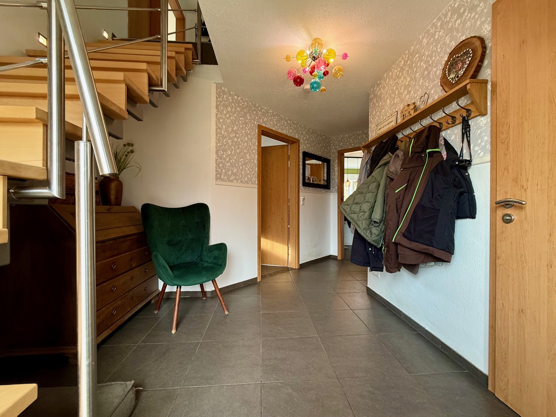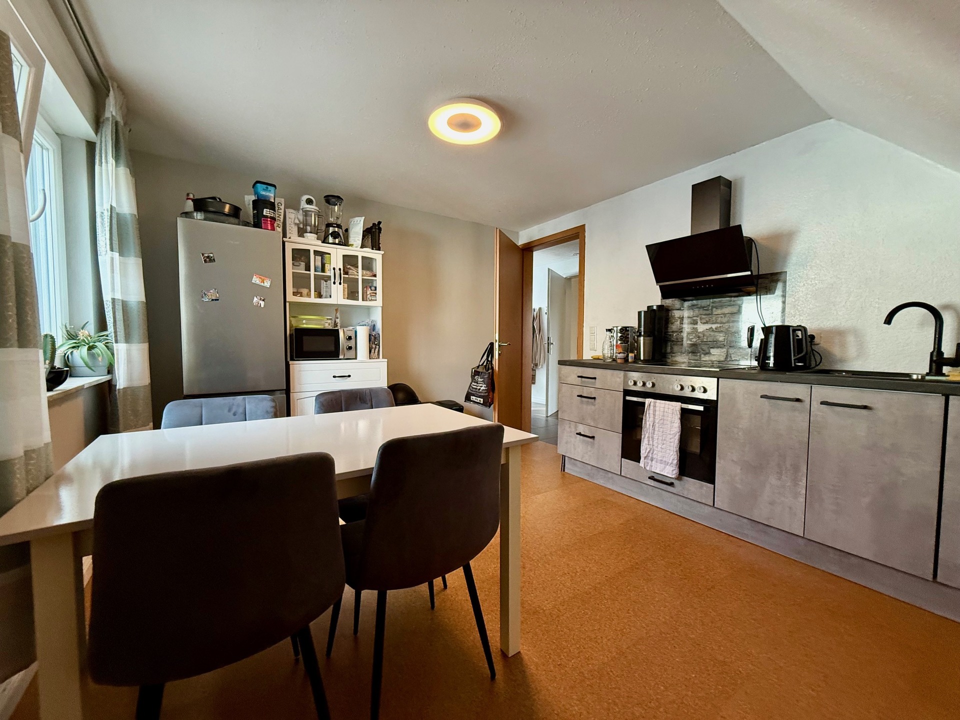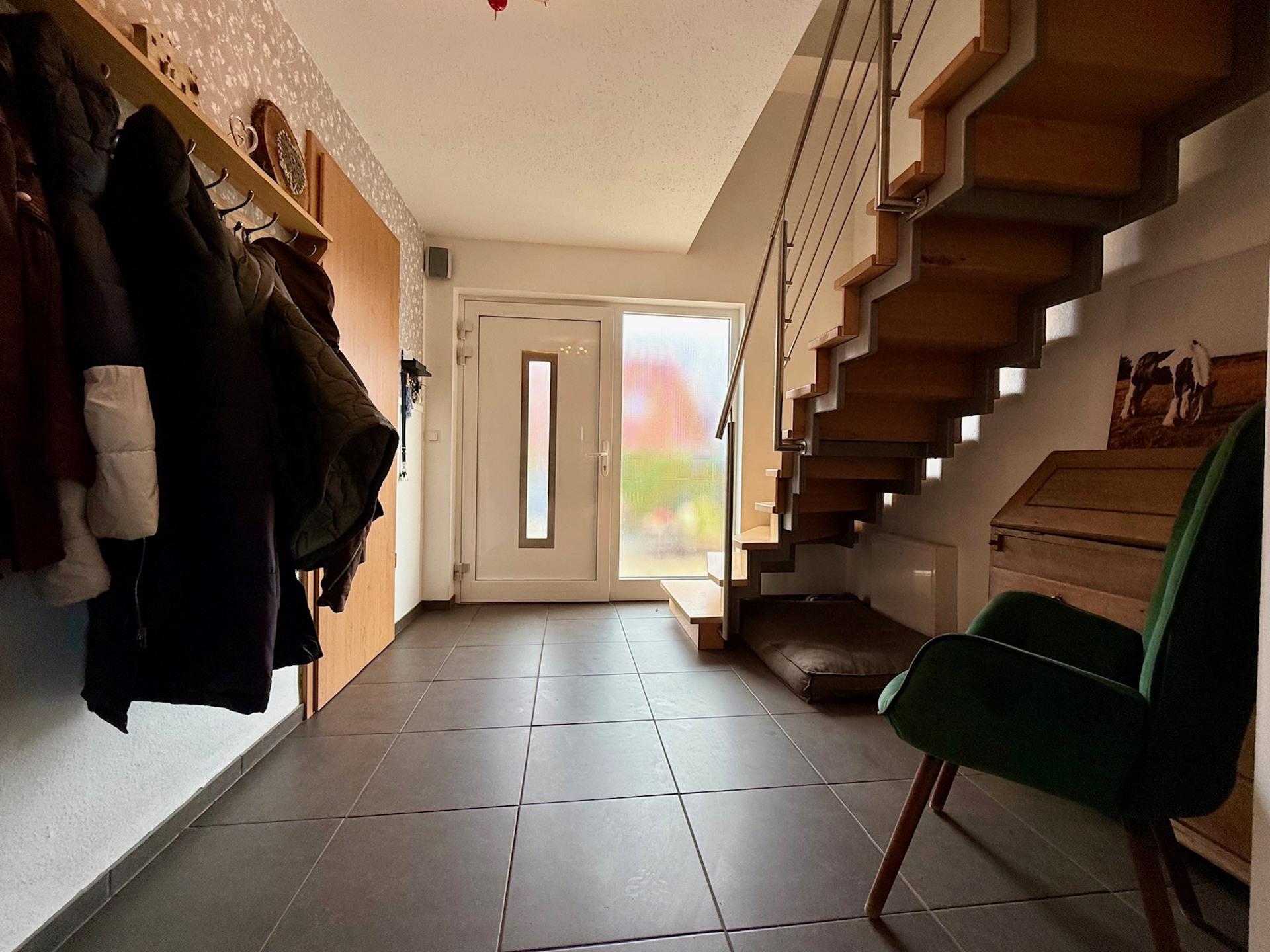 Die moderne Einbauküche von 2018 im Erdgeschoss, die mitverkauft wird, wird zum Herzen Ihres neuen Zuhauses. Ob beim Kochen für Freunde oder beim gemeinsamen Essen mit der Familie – hier entstehen Erinnerungen. Zusätzlich stehen im Erdgeschoss ein Tageslicht-Duschbad nebst WC sowie ein Hauswirtschaftsraum zur Verfügung.