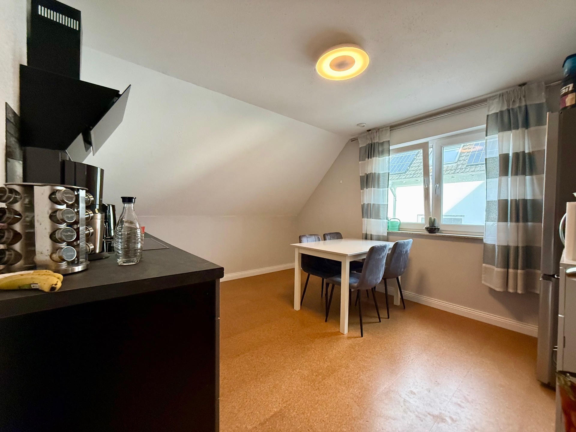 Das Dachgeschoss bietet Ihnen praktische Flexibilität. Neben einem weiteren Tageslicht-Vollbad finden Sie hier aktuell drei Schlafräume sowie eine zweite Küche, die bei Bedarf unkompliziert in ein weiteres Schlafzimmer, Gästezimmer oder Home-Office umgewandelt werden kann. Der von dieser Etage aus begehbare Dachboden bietet derzeit Platz für ein Home-Office und zusätzlichen Stauraum – optimal für kreative Köpfe oder als Rückzugsort.