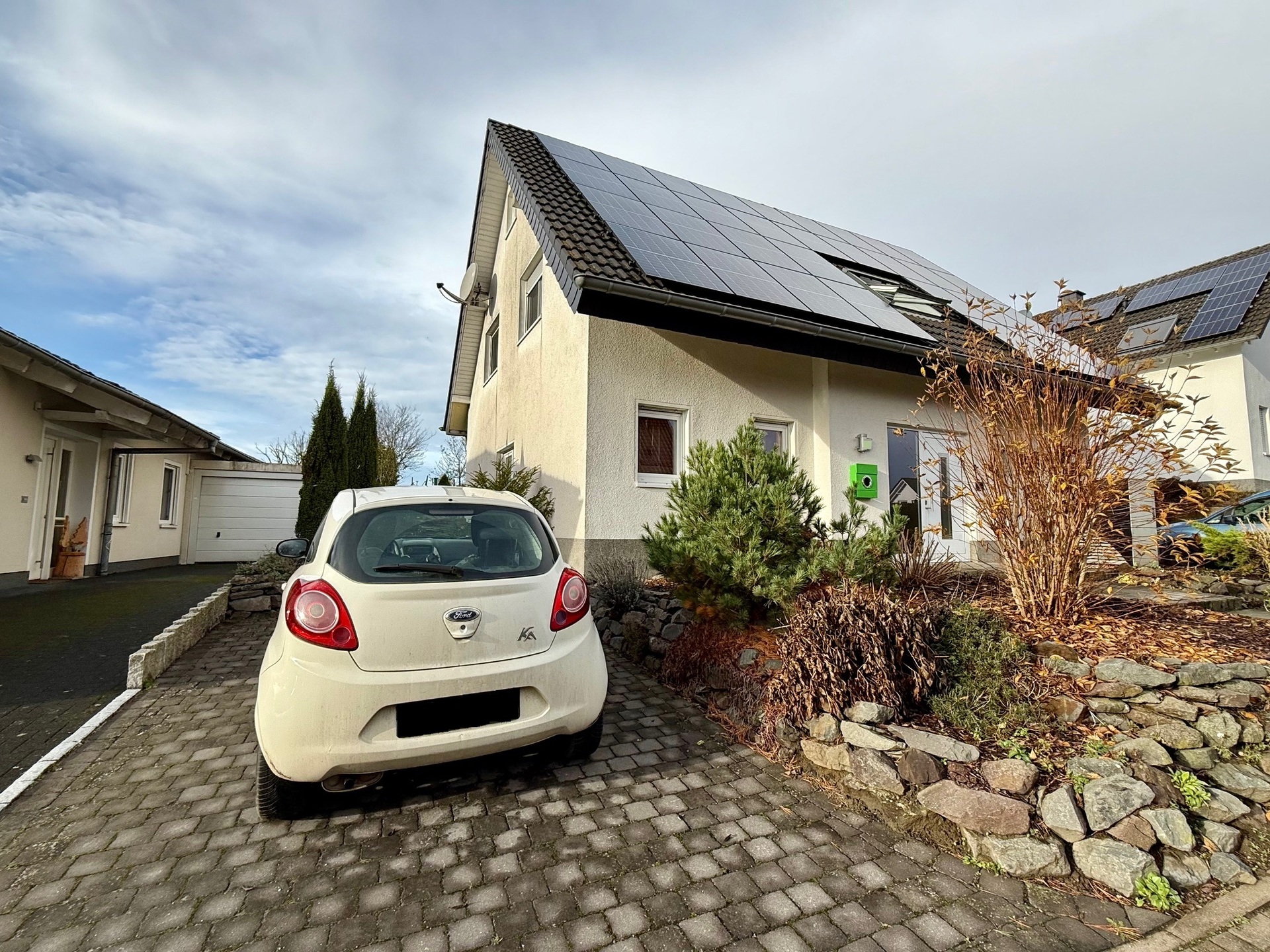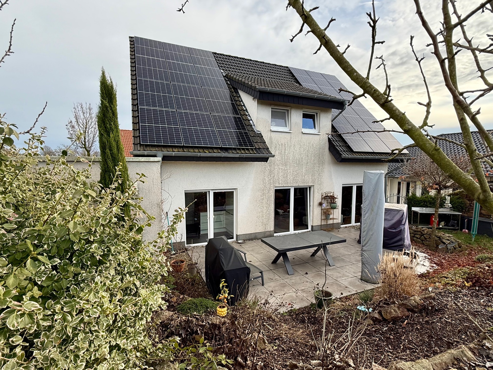 Die Erstinbetriebnahme der Photovoltaik-Anlage erfolgte im Juni 2023; im September 2024 ist der 15 kWh-Speicher dazugekommen. Laut Aussage der Verkäuferseite ergibt sich auf rund 18 Jahre gerechnet eine jährliche Einspeisevergütung von ca. EUR 1.000,–