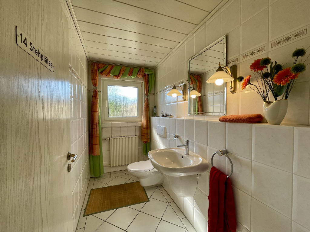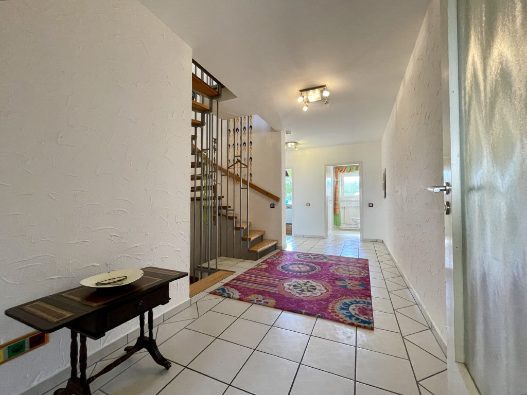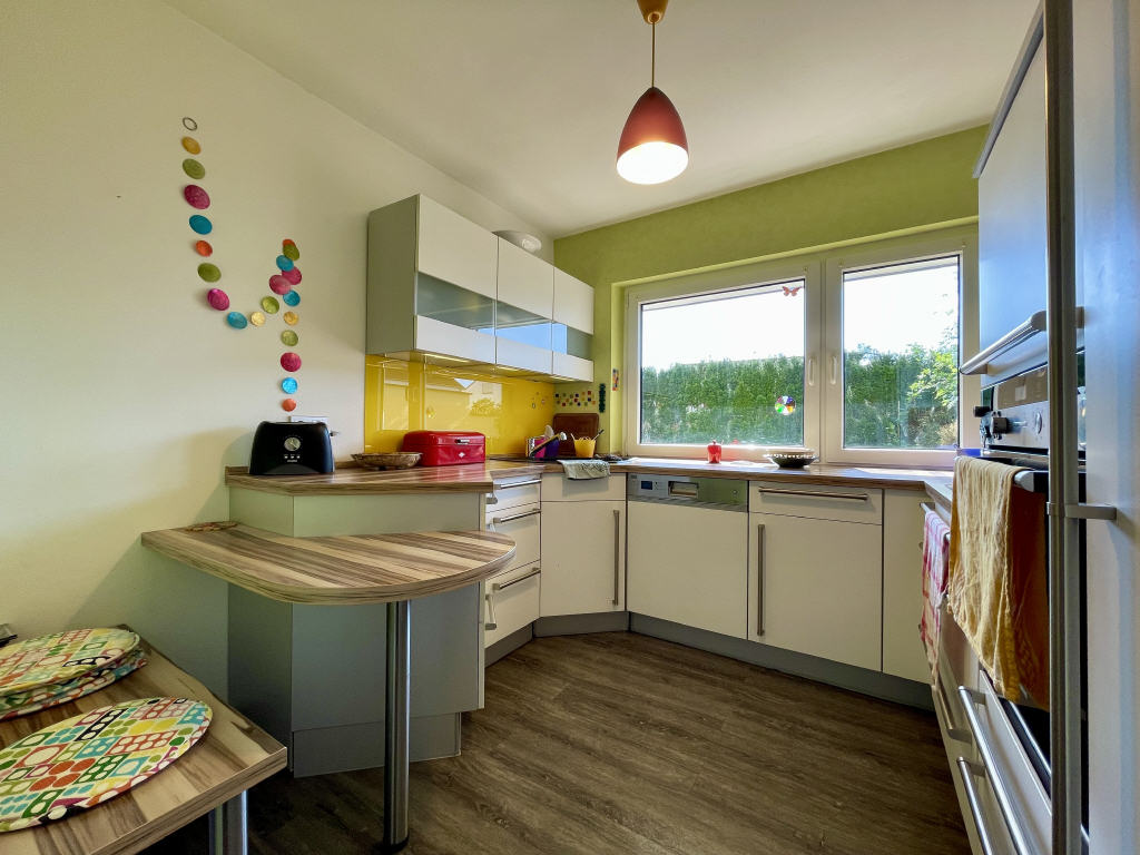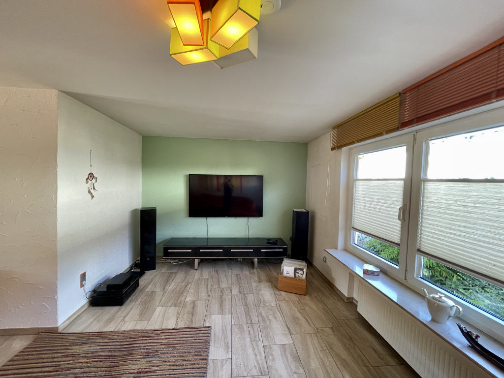 Über den einladenden Flurbereich gelangen Sie dann in das gemütliche Wohn-/Esszimmer, in die Küche und in das nicht allzu kleine Gäste-WC mit Fenster.