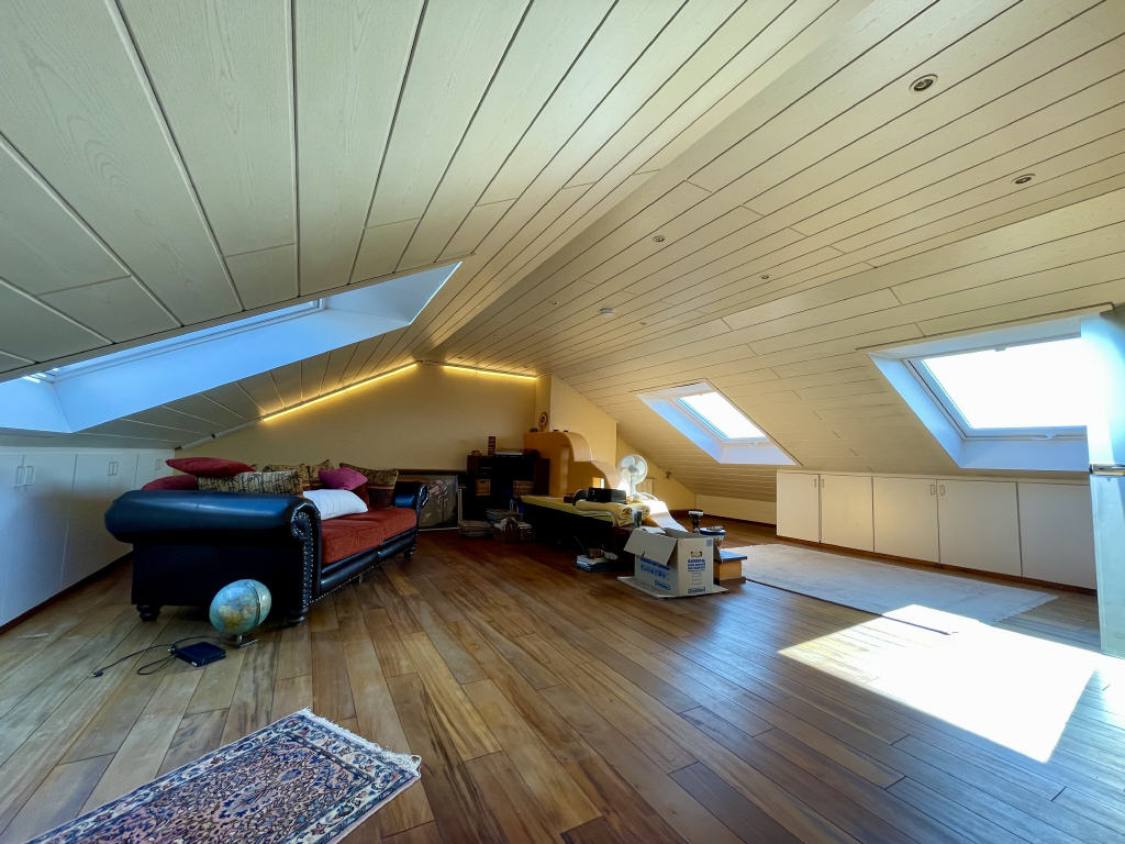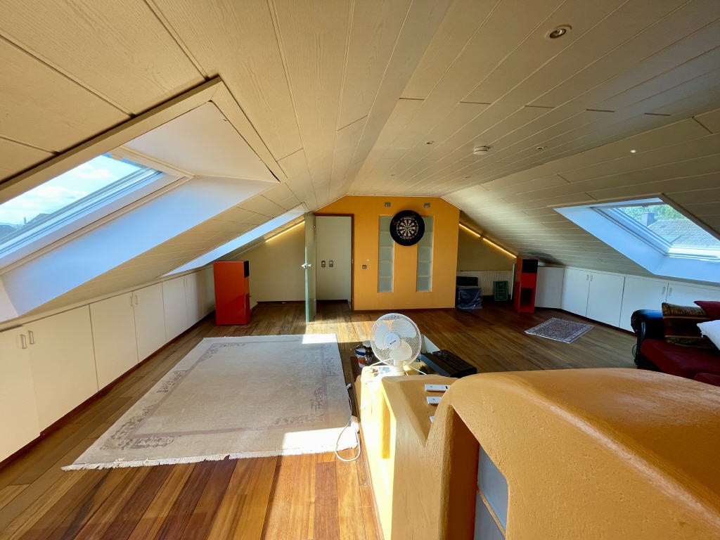 Hier erwartet Sie ein wohnlich verwendbarer Raum mit etwa 60 m² Nutzfläche nebst Verstaunischen in den Drempeln. Drei große neue Dachfenster mit elektrisch steuerbaren Rollläden sorgen zudem für ein lichtdurchflutetes Ambiente.
