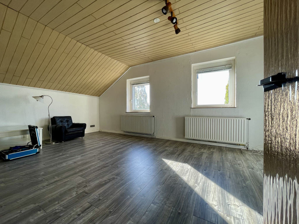 Das Wohnhaus umfasst etwa 202 m² Gesamtwohnfläche mit zwei gesonderten Wohneinheiten auf zwei Etagen im Ober- und Dachgeschoss. Das Obergeschoss wird zum gegenwärtigen Zeitpunkt vom Eigentümer selbst bewohnt. Die Räume im Dachgeschoss stehen leer.