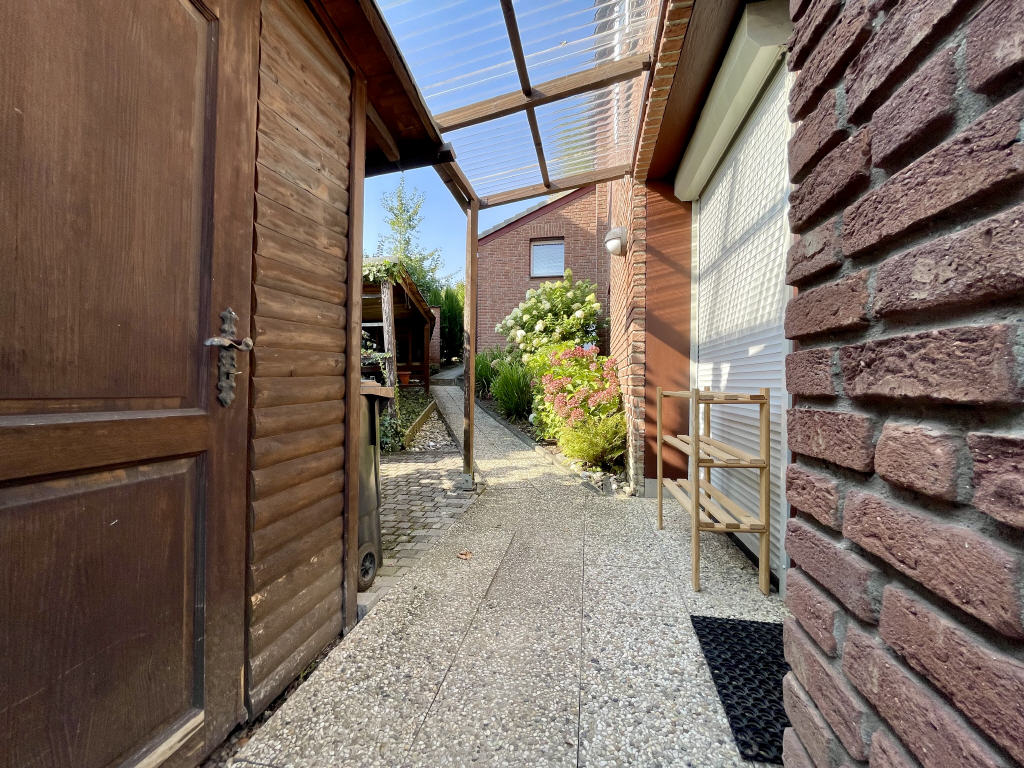 Der Garten ist über eine seitliche Zuwegung mit dort platziertem Gerätehaus erreichbar. Es erwartet Sie eine sonnige Grünanlage, die Sie als Wohlfühl-Oase nach Ihren eigenen Wünschen gestalten können.