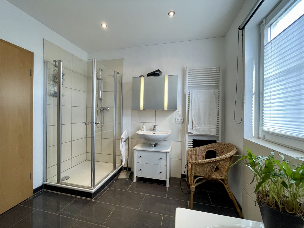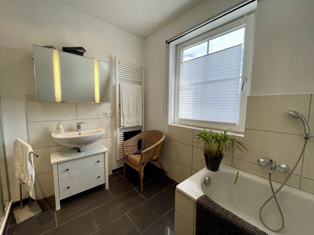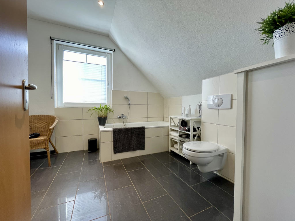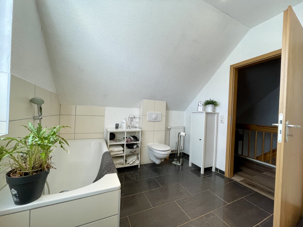 Das Dachgeschoss verfügt über drei Schlafzimmer, Flur sowie ein Tageslichtbad mit Wanne, separater Dusche, Waschbecken und WC.