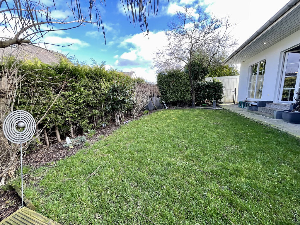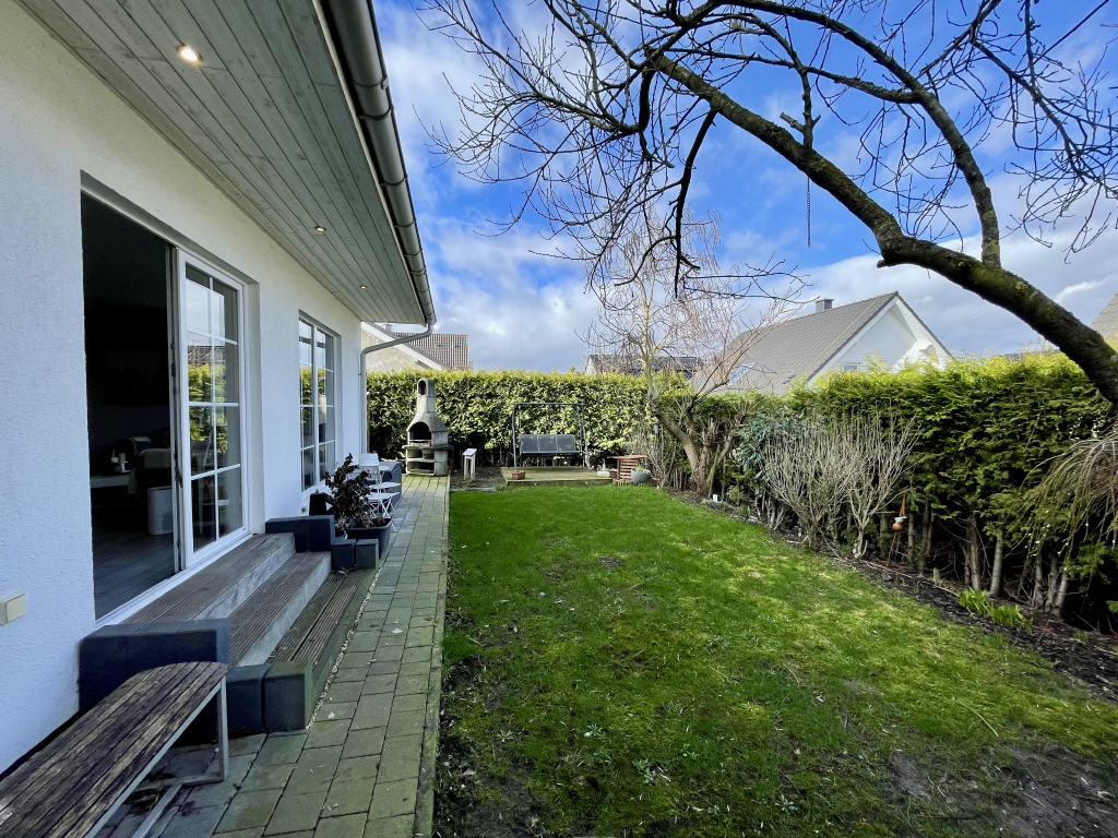 Zur Erholung und Entspannung an der frischen Luft lädt der pflegeleichte, komplett umzäunte und nicht direkt einsehbare Garten ein. Dort gibt es außerdem eine Terrasse nebst Außen-Kamingrill sowie zwei weitere Freisitzmöglichkeiten zum Relaxen.