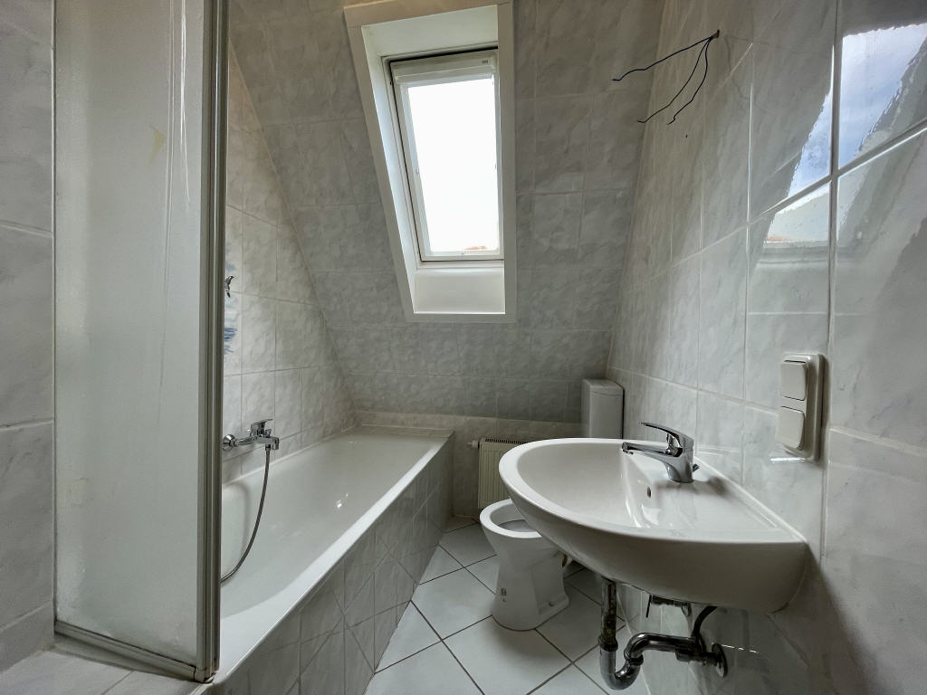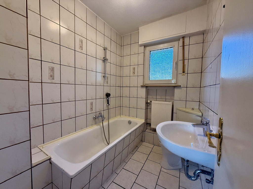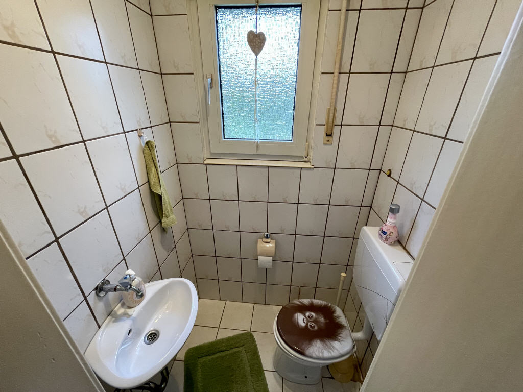 Der Look vom Bad und Gäste-WC im Erdgeschoss entspricht dem des Gebäude-Baujahres. Das Bad im Dachgeschoss wurde schon optisch aufgewertet (vermutlich in der Renovierungsphase in 1992/1993).