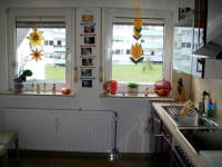 In einem sehr gepflegten 6-Familienhaus erwartet Sie dieses wahre „Schmuckkästchen“. Das Objekt liegt im Dachgeschoss, hat aber kaum Schrägen und teilt sich wie folgt auf: – Wohn-/Essbereich – Schlafzimmer – Kinder-/Arbeitszimmer – Küche mit Schiebetür – Diele – Abstellraum – befenstertes Gäste-WC – Tageslichtbad mit Wanne und Dusche Es erwartet Sie insgesamt eine exklusive Innenausstattung. Alle Räume verfügen über Roll-Läden. Im Dielen- und Wohn-/Essbereich sowie im Bad sind Halogenbeleuchtungen installiert. Der Wohn-/Essbereich ist mit edlem Parkettboden ausgestattet. Das Schlaf- und das Kinder-/Arbeitszimmer sind mit Laminat ausgelegt. Die Bäder, Küche und Diele präsentieren sich mit hochwertigen Granitböden. Die vorhandene Einbauküche (3 Jahre alt, Farbe: Rot/Hochglanz) mit E-Geräten, Herd (Ceranfeld), Kühl-Gefrierkombi und Spülmaschine kann kostenpflichtig übernommen werden. Weiteres ist im Konkretfall mit dem jetzigen Bewohner zu besprechen. Zum Entspannen ist der Balkon (mit Markise) optimal. Hier können Sie ganz unbedarft relaxen. Genießen Sie außerdem den tollen Ausblick über Menden. Das zum Haus gehörende Gartengrundstück steht allen Bewohnern zur Verfügung. Auch Sie dürfen diesen selbstverständlich mitbenutzen. Ein eigener Kellerraum wird Ihnen ebenfalls zur Verfügung gestellt. Im Hause existieren zudem ein gemeinschaftlicher Waschbereich, zwei Trockenkellerräume sowie ein Fahrradkeller. Alle Wohnungen sind jeweils etagenversetzt gebaut, so dass man nie mit seinem Nachbarn auf einer Etage ist. Diese Wohnung ist die höchste, daher auch die ruhigste und bietet de facto die beste Aussicht. Der TV-Empfang erfolgt über einen Kabelanschluss. Der zur Wohnung gehörende PKW-Außenstellplatz befindet sich direkt am Haus und ist im angegebenen Mietpreis bereits berücksichtigt. Haustiere (Hund/Katze) sind nicht erlaubt. Für die Reinigung des Treppenhauses sowie die Pflege der Außenanlagen ist ein Mitbewohner des Hauses zuständig. Diese Arbeiten werden dann über die Nebenkostenabrechnung umgelegt. Lage: – Zentrale und ruhige Lage – Diverse Einkaufsmöglichkeiten, Ärzte, Apotheken, Schulen oder Kindergärten sind von hier aus schnell zu erreichen – Die Anbindung an die Autobahn ist gut Unser Fazit: Diese Wohnung ist sowohl für ein kinderloses Paar mit separatem Bürowunsch als auch für die dreiköpfige Familie bestens geeignet. Eine Anmietung der Räume ist ab dem 01.01.2011 möglich. Haben wir Ihr Interesse geweckt? Dann starten Sie noch gleich Ihre persönliche Online-Anfrage. Sie erhalten hiernach umgehend weitere Informationen von uns.